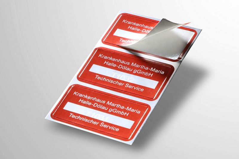 Neben stark haftender PVC- oder Aluminiumfolie nutzen wir in vielen Projekten sogenannte Void-Folie. Beim Versuch des Abziehens löst sich der Klebstoff von der Etikettenfolie und hinterlässt beispielsweise ein Schachbrettmuster oder Schriftzug/Logo auf dem Untergrund. So wird jede Manipulation sichtbar.