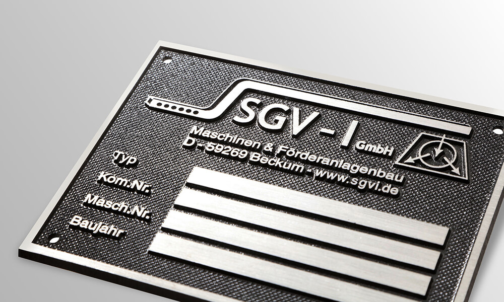Sie werden als Kennzeichnung von Maschinen, Anlagen und Transportbehältern, als Fahrzeugtypenschilder sowie für Sicherheits- und Informationshinweise in verschiedenen industriellen Umgebungen verwendet. Metallschilder aus Aluminium eignen sich aber auch für fortlaufend nummerierte Beschilderungen, gut sichtbare Logos und DataMatrix- bzw. QR-Codes.